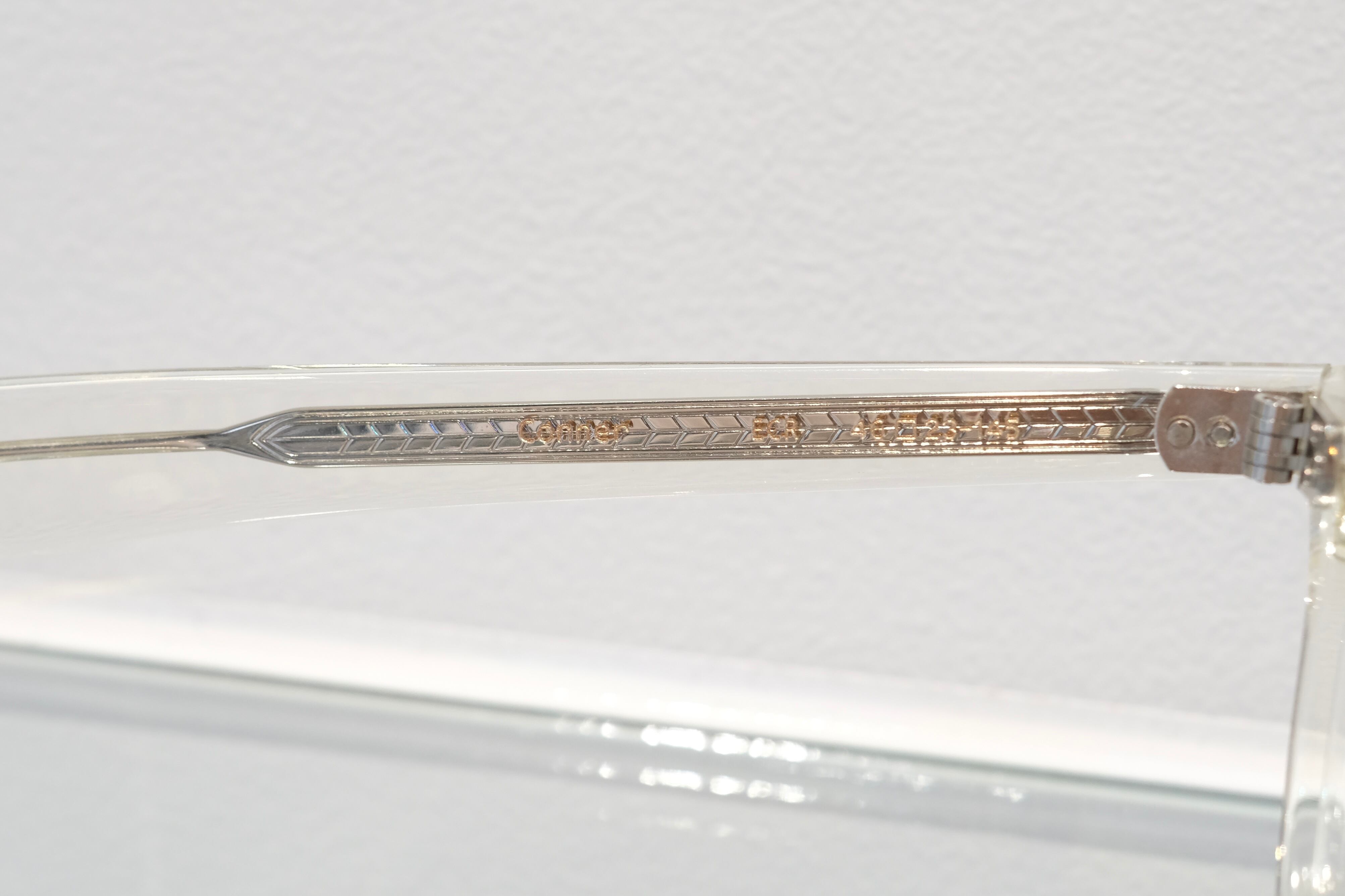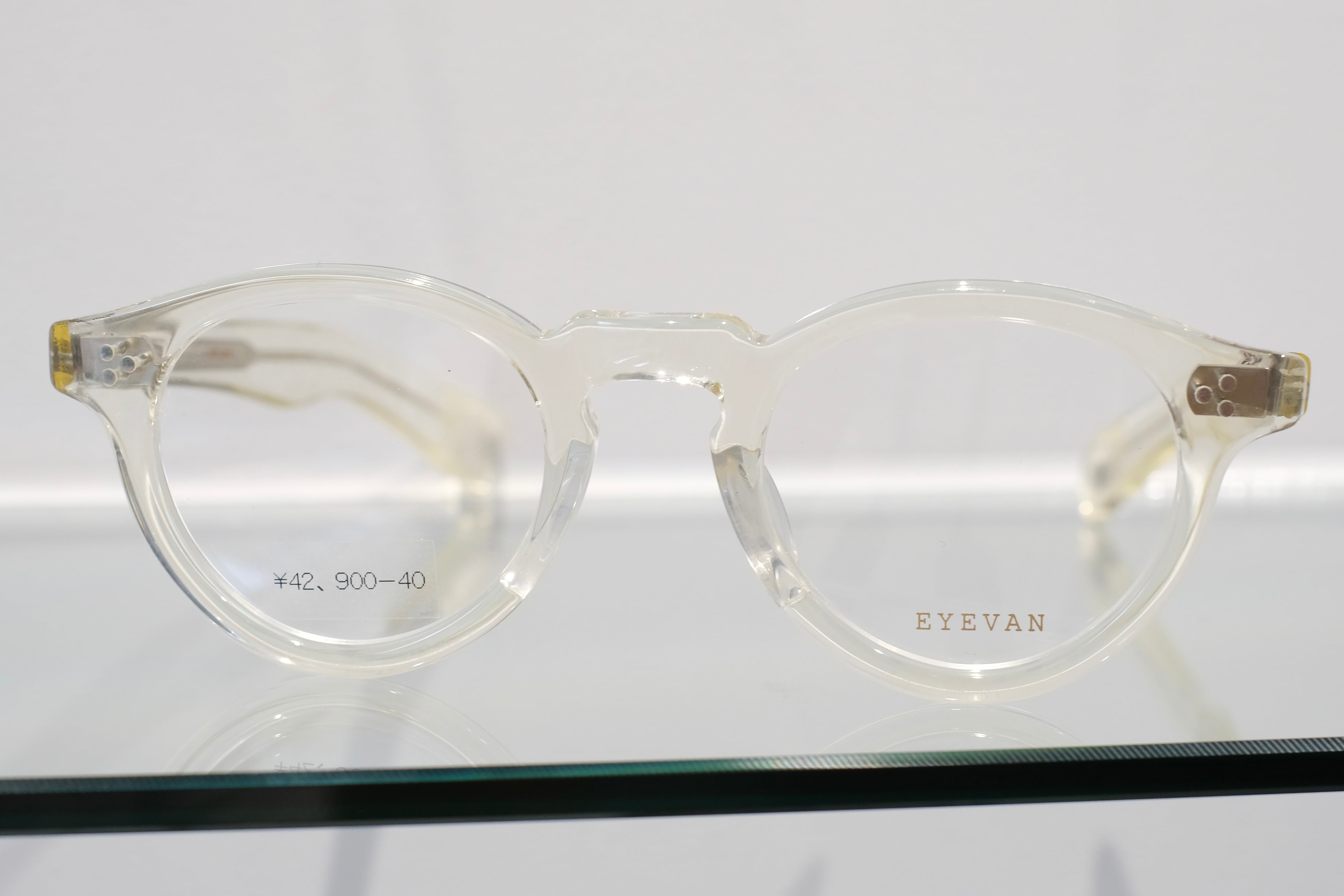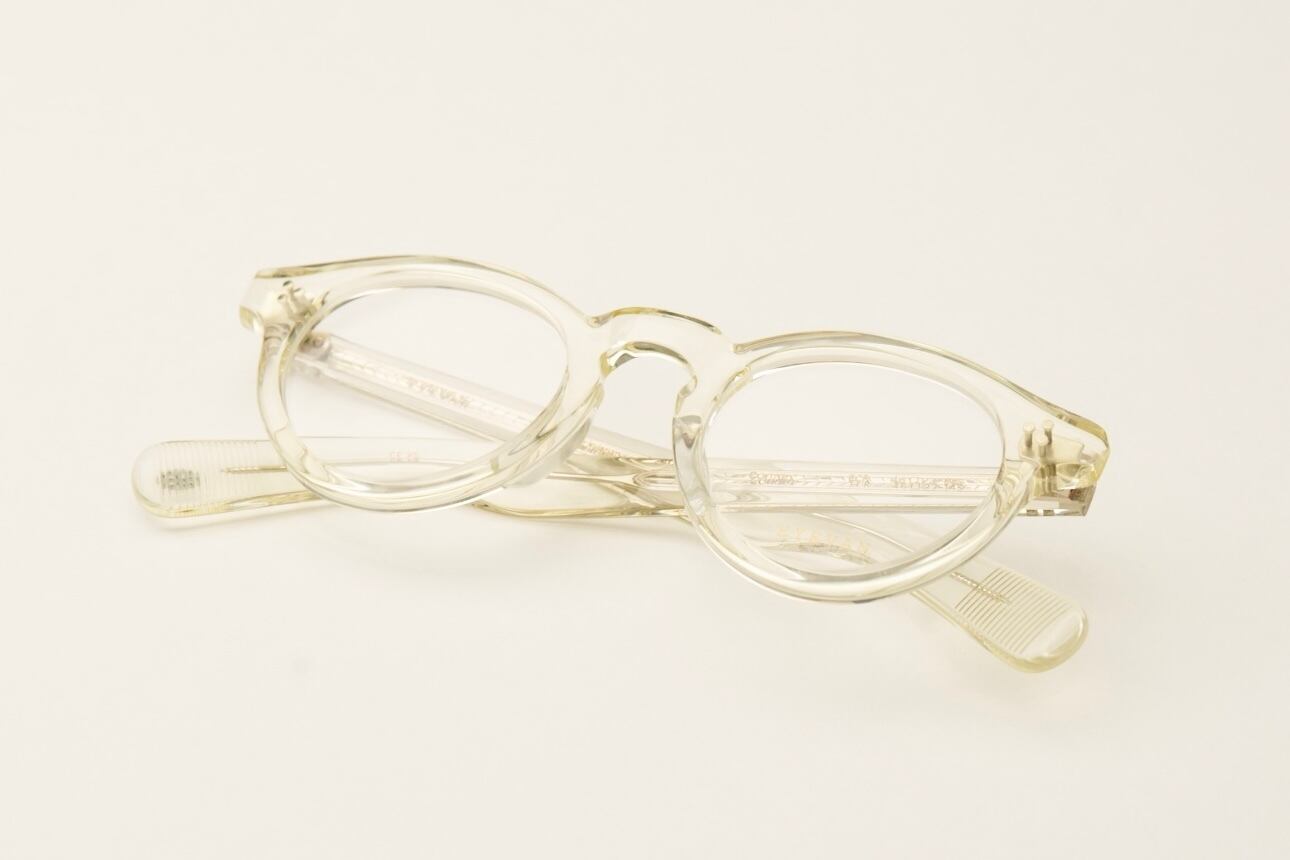 エッヂのある肉厚なフロントと極太なワイドテンプルによって表現した、フレンチヴィンテージシリーズのニューモデル。60年代のフレンチヴィンテージの中でも名作として知られるラウンドパントフレームをベースに徐々に厚みを加えてリデザインしたフロントに、40年代以前のノー芯で作られたヴィンテージフレームの独特な雰囲気を持つテンプルデザインをあわせた。製法は独自の置き丁番でのカシメ技法を採用し、EYEVANが考えるフレンチヴィンテージをネクストヴィンテージとして更に一歩先へ進めたモデル。