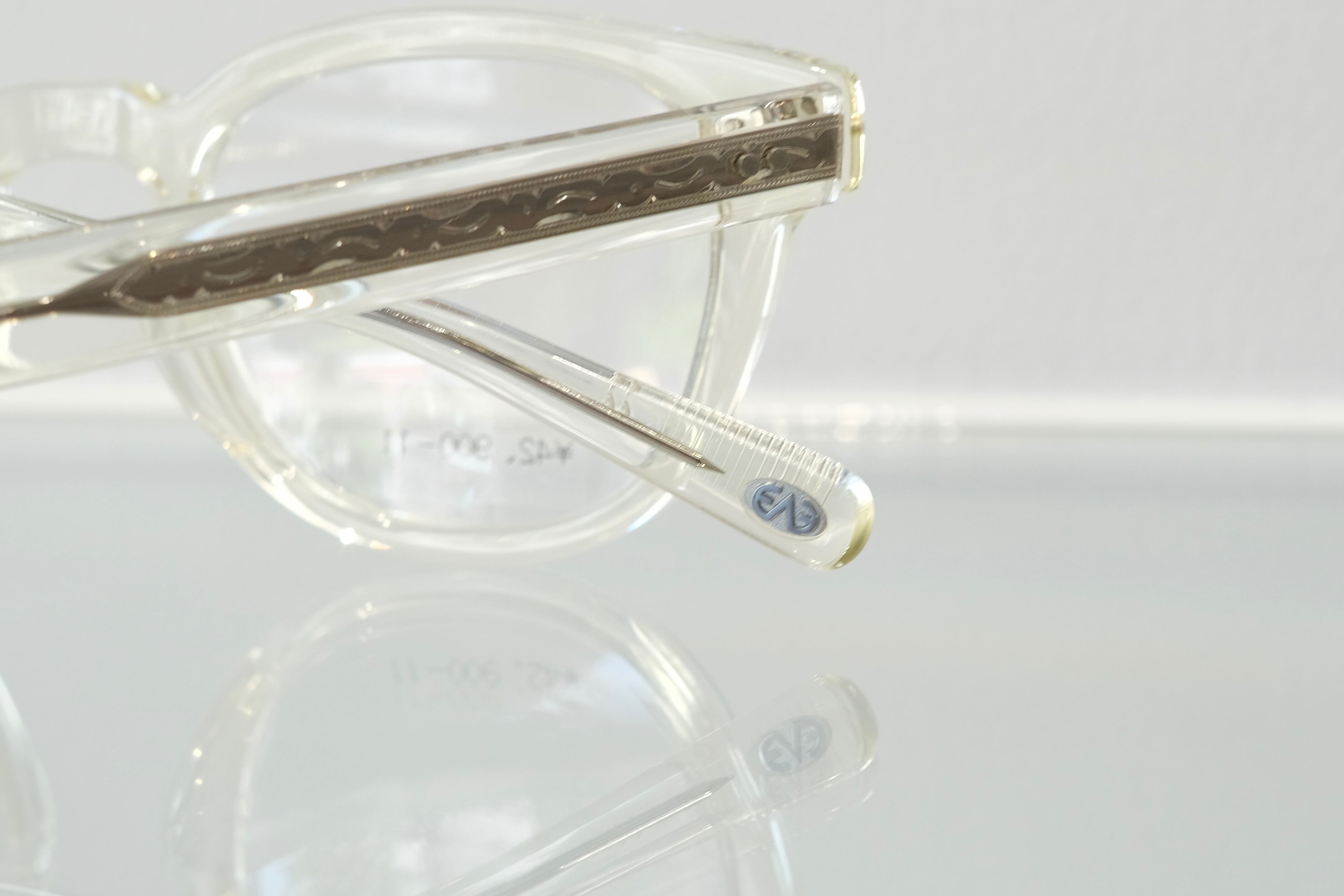 テンプル芯には、クラシックカーのパーツからインスパイアされた柄を表裏に彫り込んだオリジナル芯を採用。