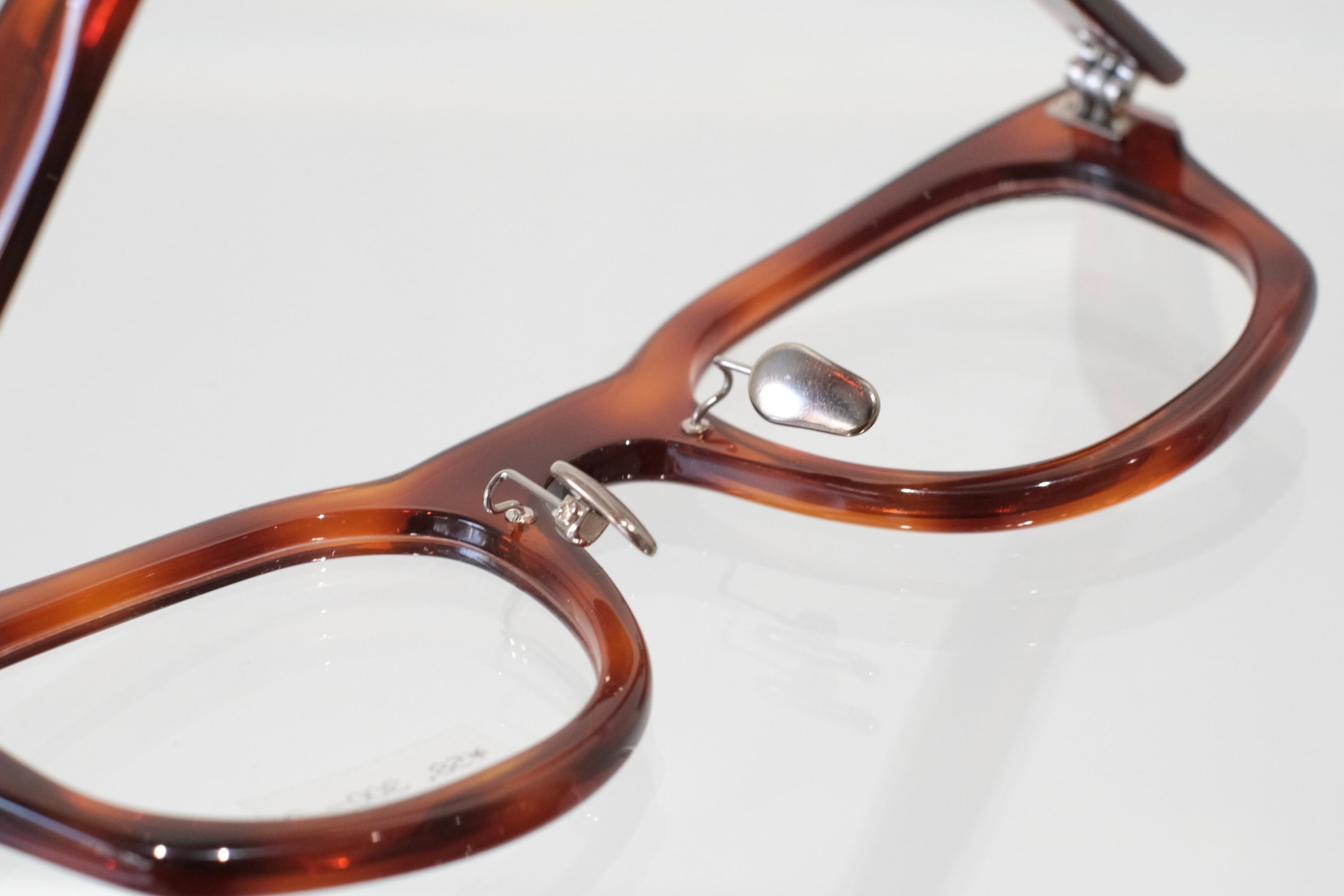 カシメピンの配置や極太テンプルなどヴィンテージを彷彿とさせるようなディテールながらも、