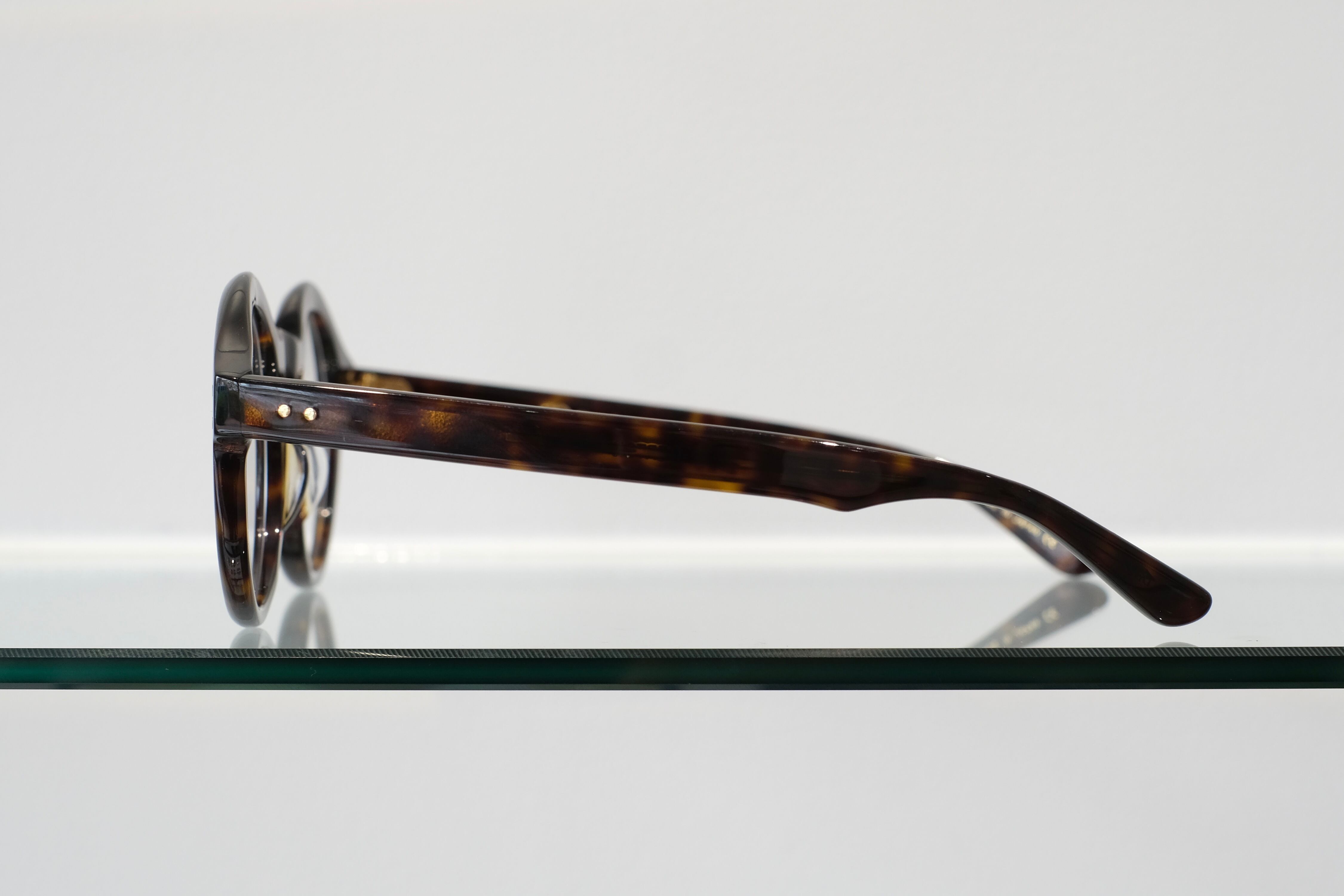 やや大きめのラウンドシルエットに、少し高めに設定されたブリッジを組み合わせたデザイン。